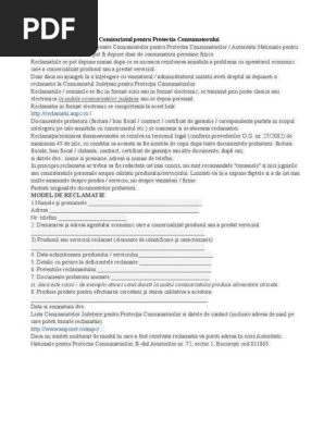 Model De Reclamatie Catre Comisariatul Pentru Protectia
