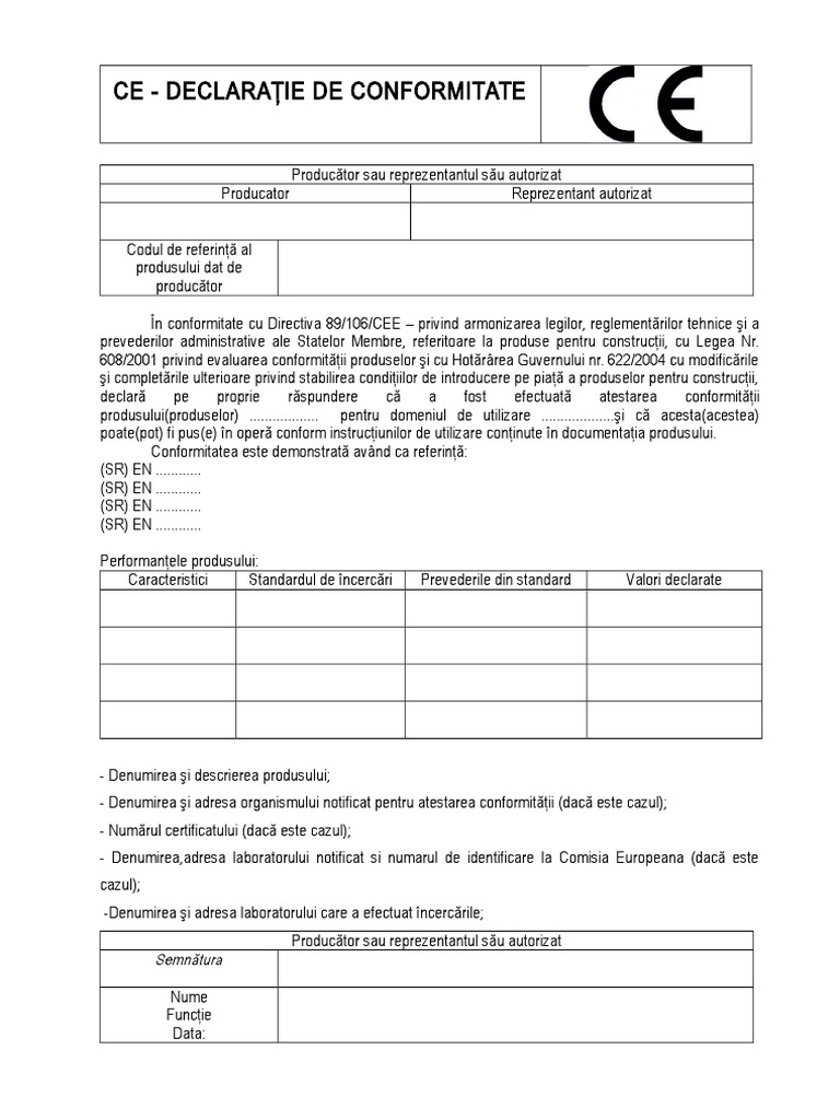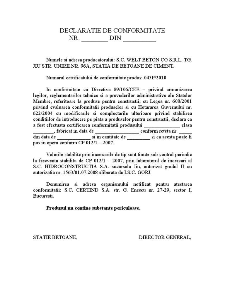 Model Declaratie De Conformitate Ce