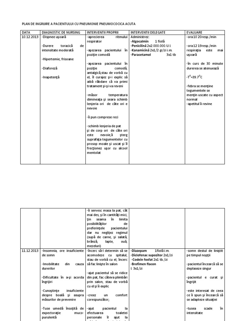 Plan De Ingrijire A Pacientului Cu Pneumonie Pneumococica Acuta
