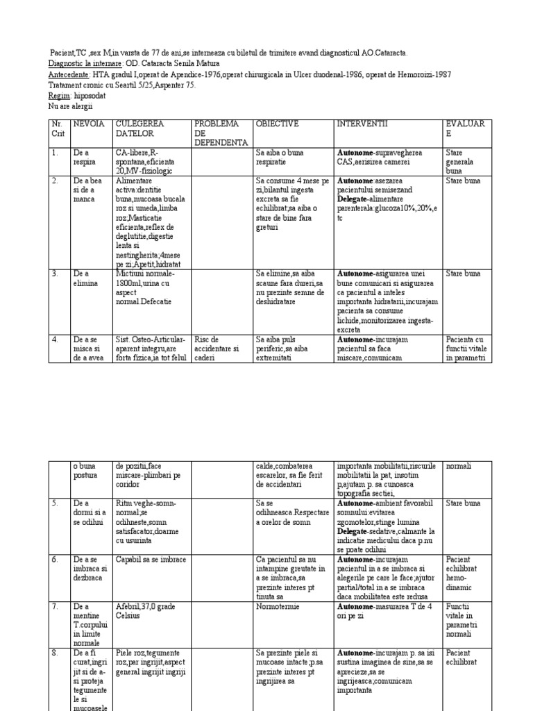 Plan De Ingrijire Ii