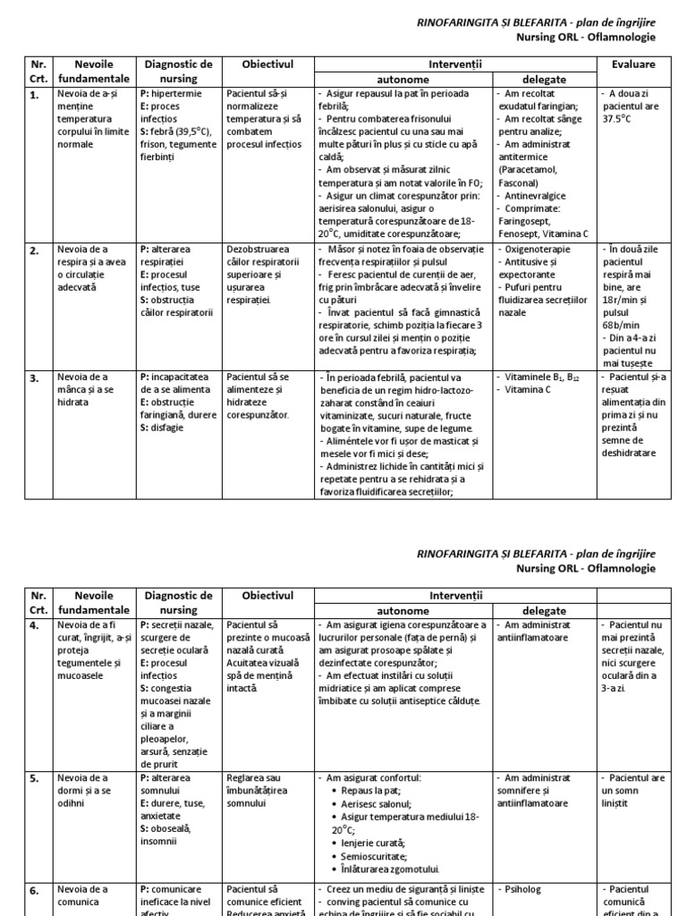 Rinofaringita Si Blefarita Plan De Ingrijire