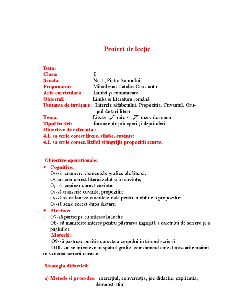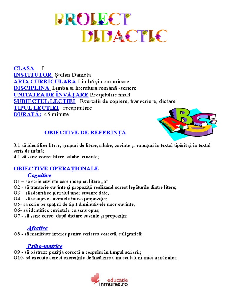1proiect De Lectie Scriere