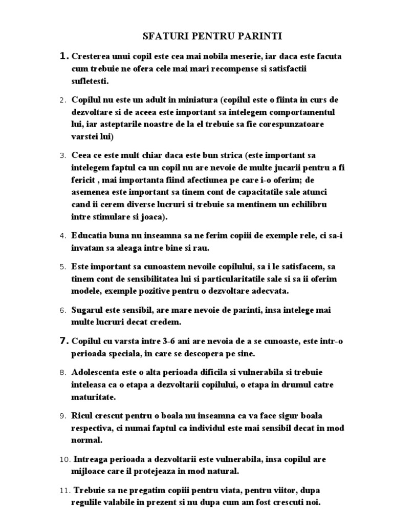 Sfaturi Pentru Parinti