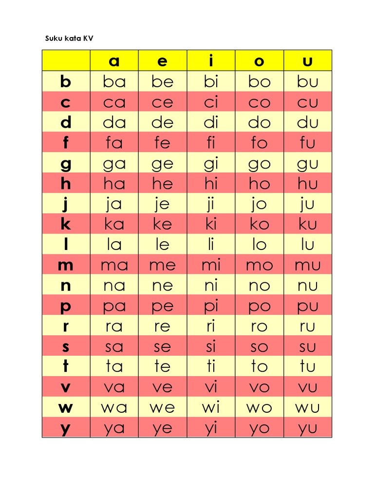 Carta Suku Kata Kv Kindergarten Reading Worksheets Kindergarden