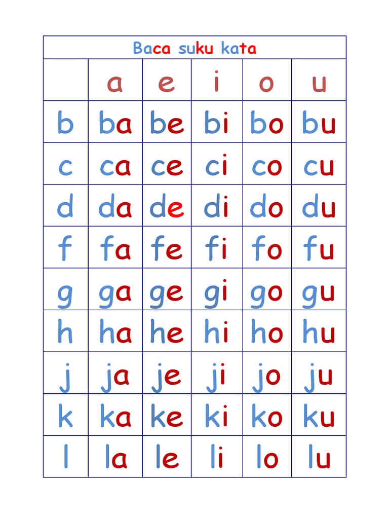 Membaca Huruf Konsonan Dengan Huruf Vokal Sa Si Su Se So