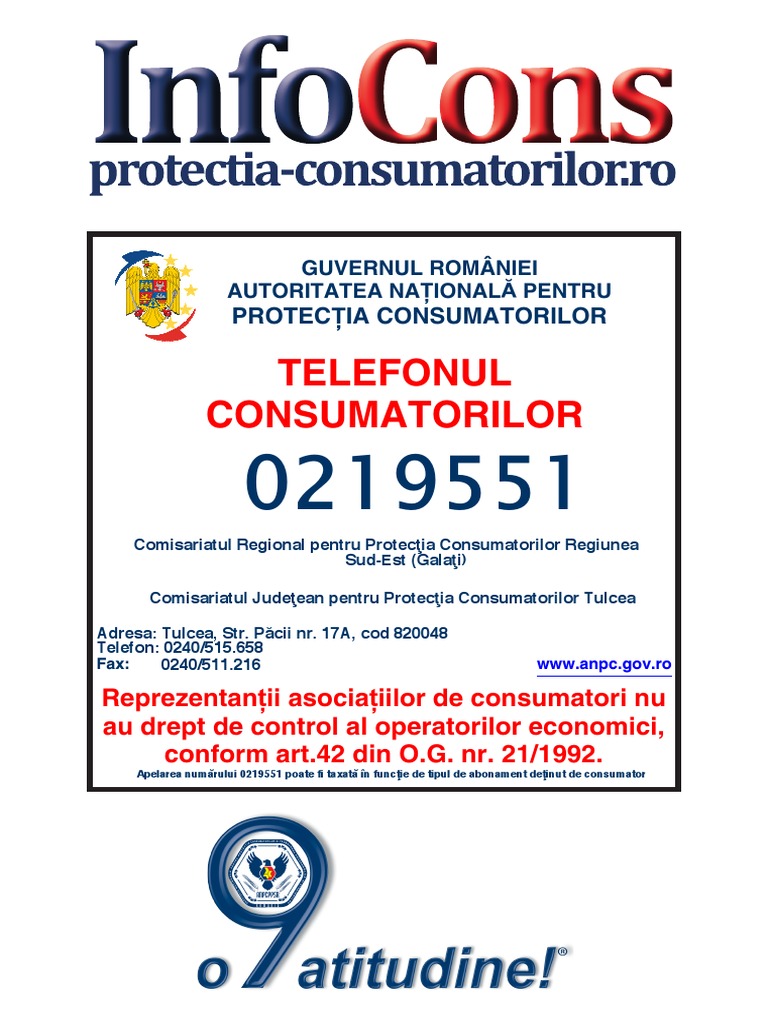 Telefonul Consumatorului Protecția Consumatorilor 021 9551 Infocons