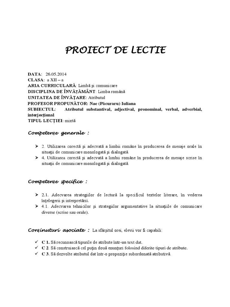Proiect Atributul Pronominal Pedagogie 317953 Regielive