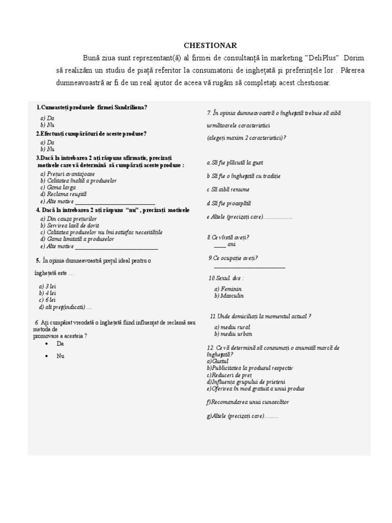 Seminar Chestionar Pentru Studiul Consumatorilor Milka Marketing