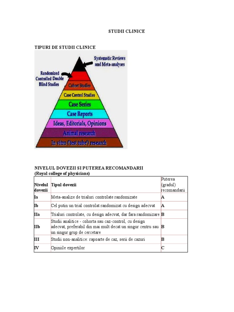 Tipuri De Studii Folosite In Cercetarea Medicala Si Nivelurile De
