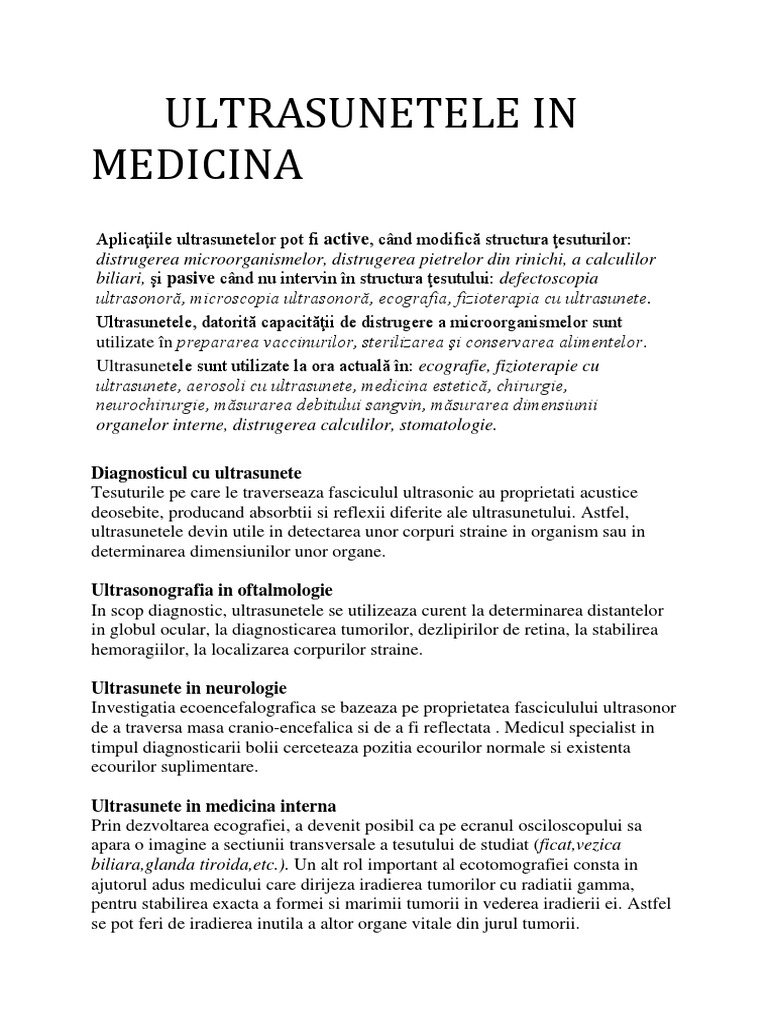 Doc Ultrasunete Aplicaţii In Tehnică Si Medicină Ultrasunetele In