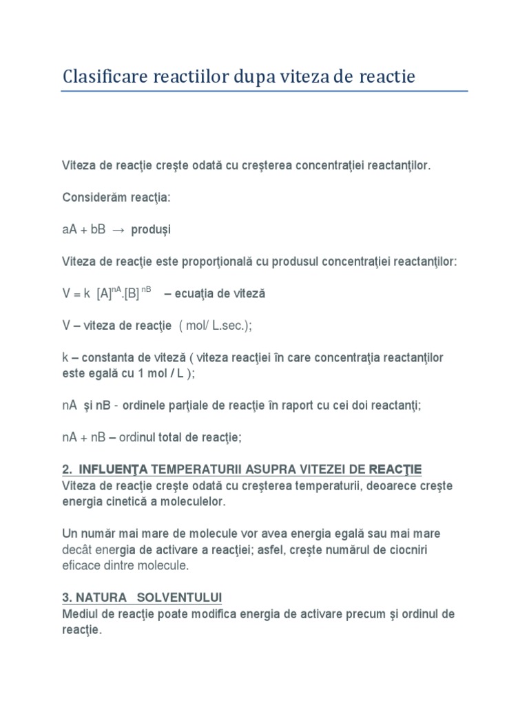 Viteza De Reactie Chimie Anorganica Meditatii